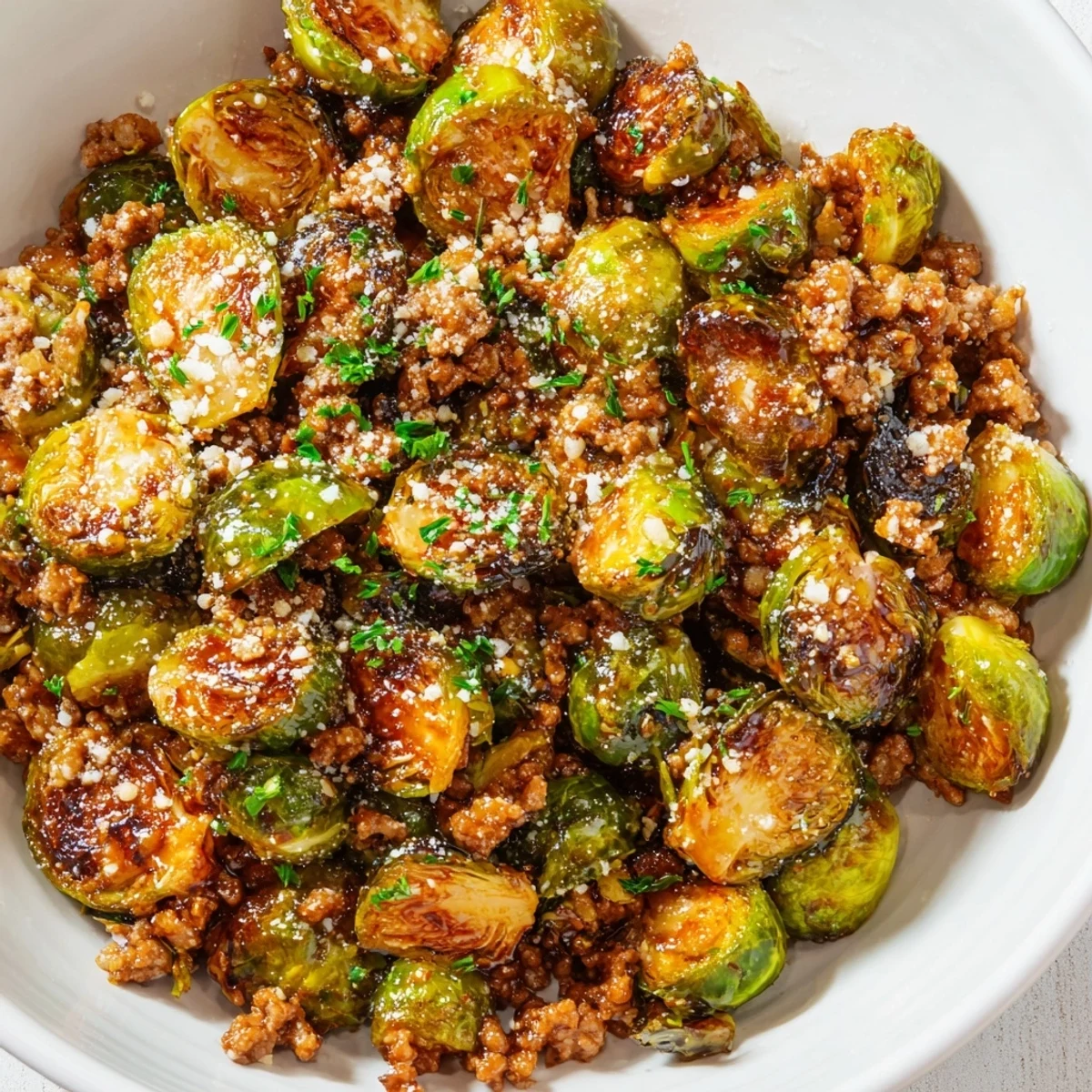 This hearty skillet combines savory ground beef with tender caramelized Brussels sprouts in a savory soy and Worcestershire glaze. The dish comes together in just 30 minutes, making it perfect for busy weeknights when you want something nutritious and satisfying without spending hours in the kitchen.