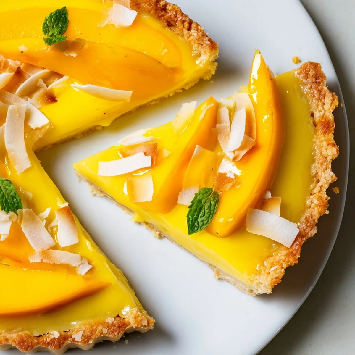 This elegant dessert combines a crisp, buttery pastry shell with a silky-smooth mango curd filling that captures the essence of tropical summer. The curd balances sweet mango puree with fresh lime juice, creating a bright, refreshing flavor profile. Perfect for entertaining, this tart requires 25 minutes of active preparation and yields 8 beautiful servings. The curd sets beautifully in the refrigerator, developing a luxuriously smooth texture that pairs wonderfully with the delicate crust. Garnish with fresh mango slices, toasted coconut flakes, and mint for a stunning presentation.