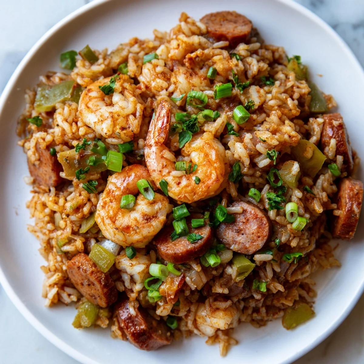 This satisfying Southern classic brings together juicy shrimp and spicy andouille sausage with the traditional Holy Trinity of onion, bell pepper, and celery. The rice absorbs all the rich flavors as it simmers in seasoned chicken broth, creating a deeply aromatic one-pan meal. Perfect for weeknight dinners or casual gatherings, this Creole favorite delivers restaurant-quality results with minimal cleanup.